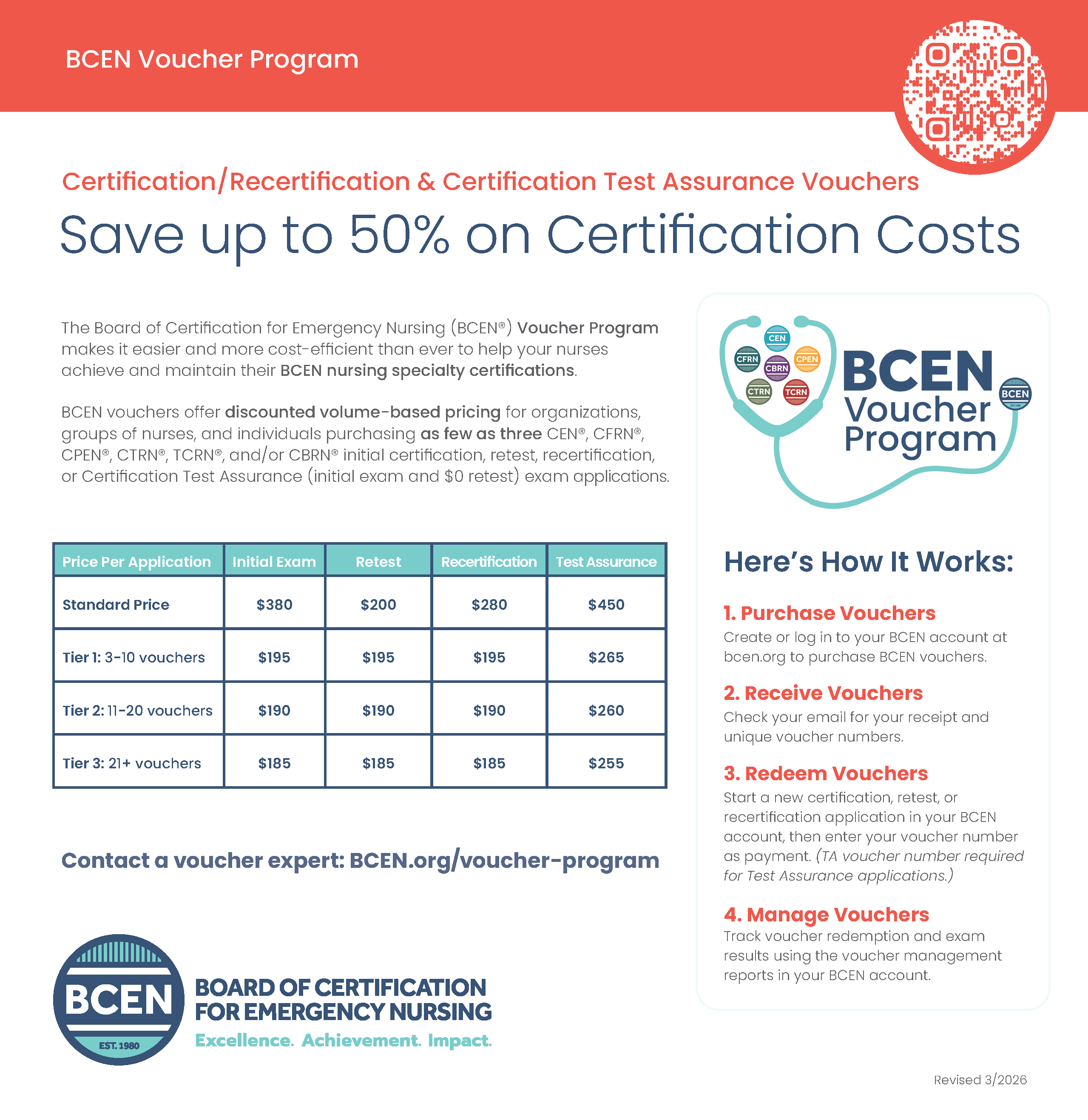 The BCEN Voucher Program is a great way to encourage the nurses in your department to pursue certification. It’s easy to think about all the reasons you “can’t” get certified … but we’re giving you one great reason you can do it! Our voucher program is open to both employers and groups of nurses, and allows you to purchase exam vouchers in bulk … at a great discount!